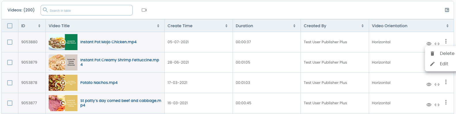 - Choose the check box near the video name or click the 3 dots menu.
